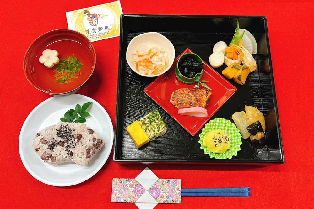 1月1日、お正月の行事食を提供いたしました。有頭えびや数の子などお正月らしい食材を使い、新年のお祝いの気持ちを込めたメニューをご紹介いたします。