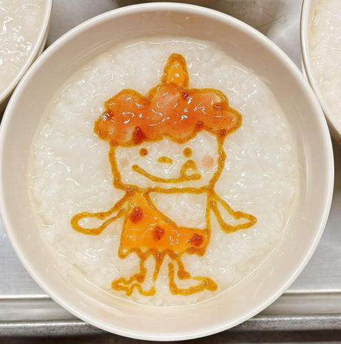 飲み込む力が低下し食形態の調整が必要な方もおられます。工夫を凝らし、お粥は「飾り粥」で提供いたしました。